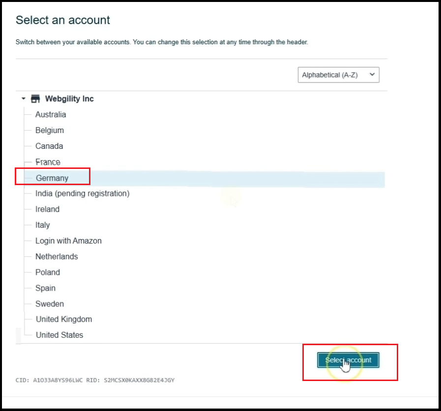 2). Select Amazon Europe as a sales channel and click on Continue.