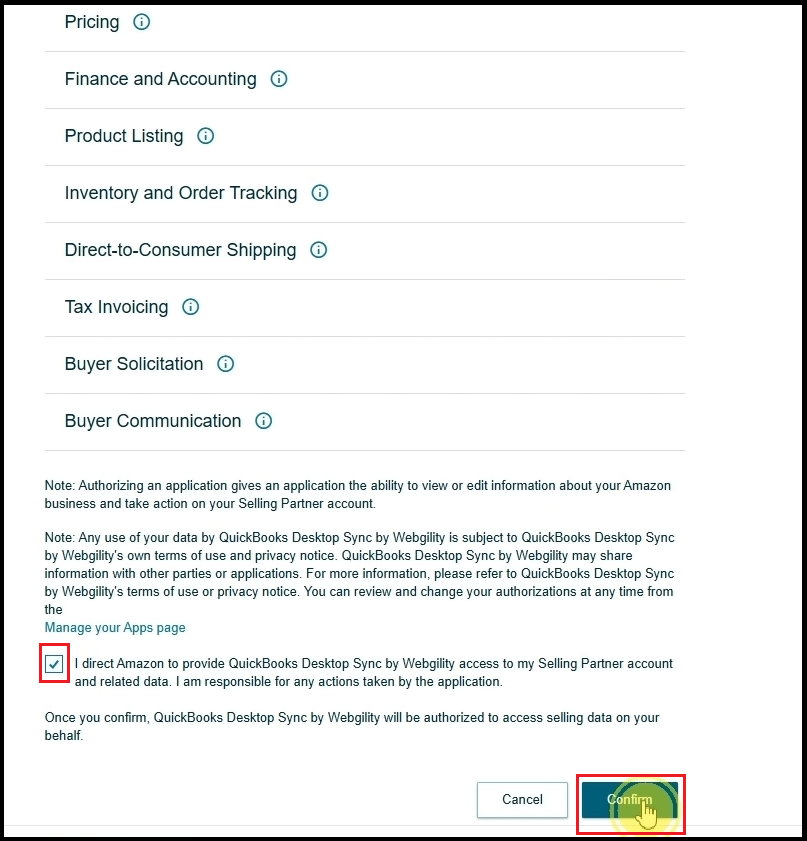 5). Authorize the permissions to the application by checking the box and clicking on Confirm