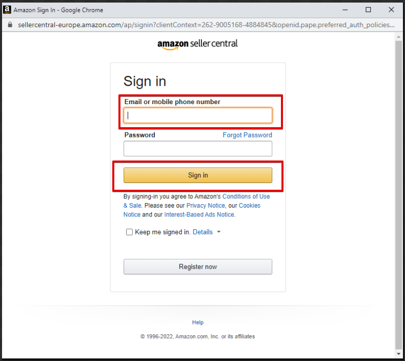 3). Sign in to your Amazon Europe Seller Central and then click on Authorize.
