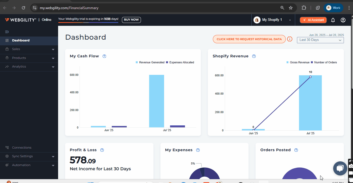 Webgility Online will begin downloading orders and refunds starting from the date you've selected.
