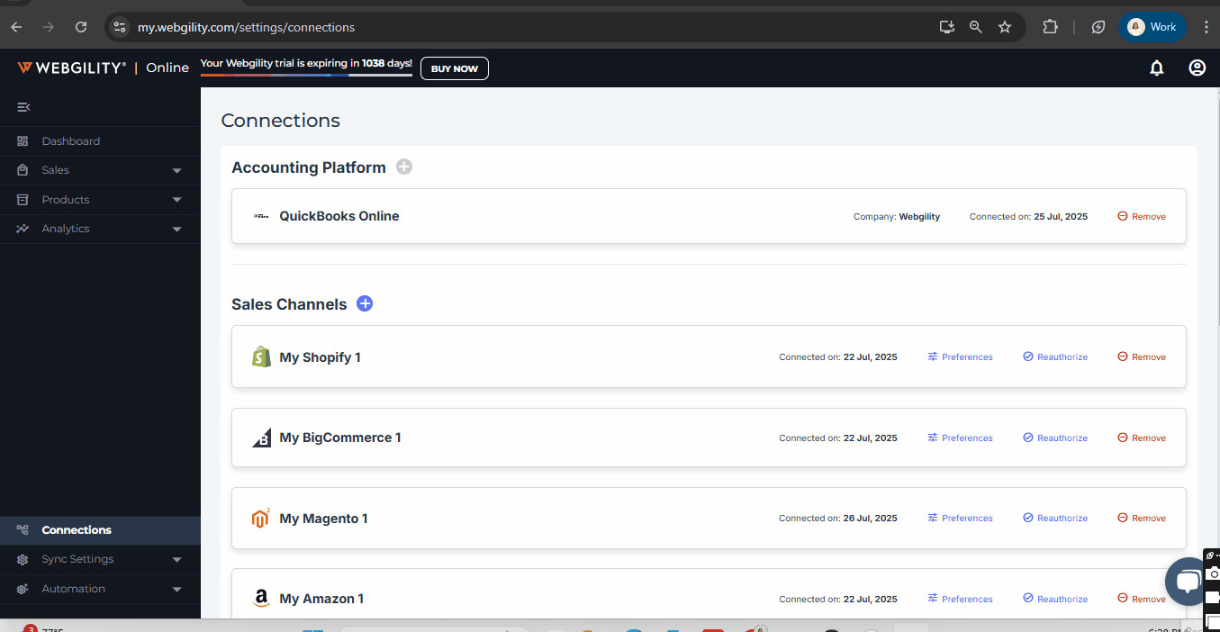 Note1: If you skip the Preferences setup and click Refresh immediately, Webgility Online will default to the last saved download date for that channel.