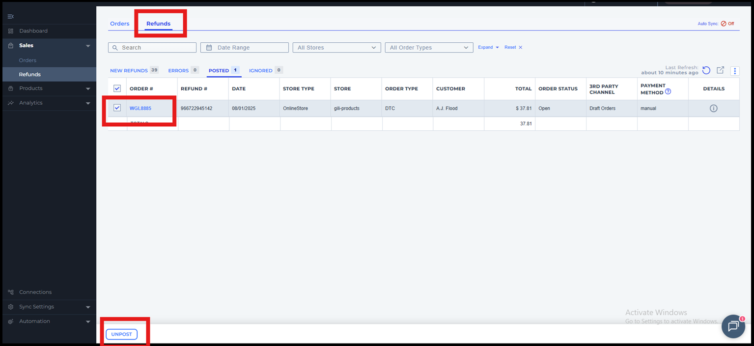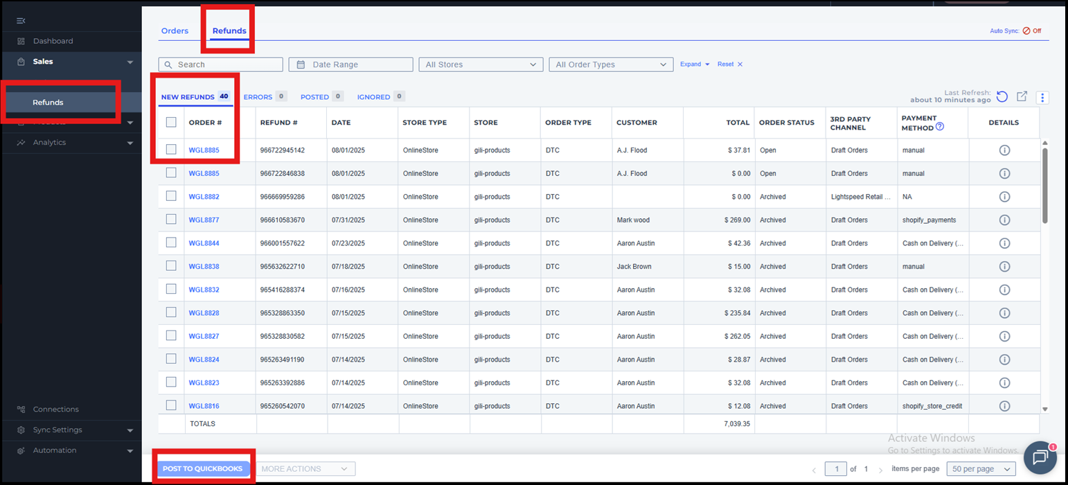 7). Click on New Refunds tab and Post the refund again to QuickBooks Online.