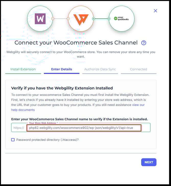 • (For detailed instructions, refer to the article How to Connect Webgility Online with WooCommerce.)