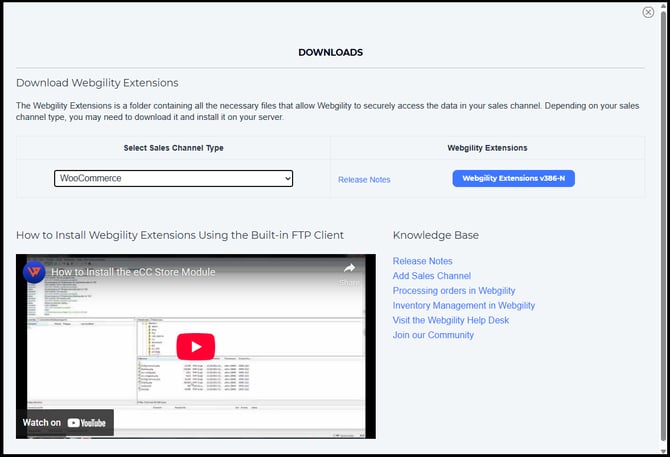 • Download the latest Webgility Extension.