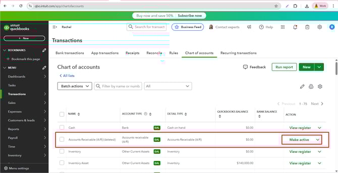 How to make an account active in Chart of accounts at your QuickBooks Online