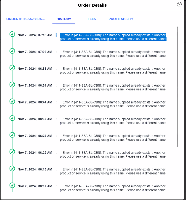 This article explains to Webgility Online users about the “Error in [item]: The name supplied already exists†message that appears when syncing orders from Webgility to QuickBooks. The issue occurs when Webgility tries to create a new item, but an item with the same name or SKU already exists in QuickBooks. This name duplication prevents the new item from being created, resulting in the error.