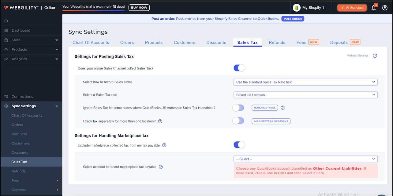 How to Set Up and Record Shopify Marketplace-Collected Tax in Webgility Online