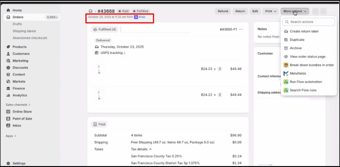 Starting January 2025, all orders placed through the Shop app on Shopify are subject to Shopify’s marketplace facilitator tax handling. This means: